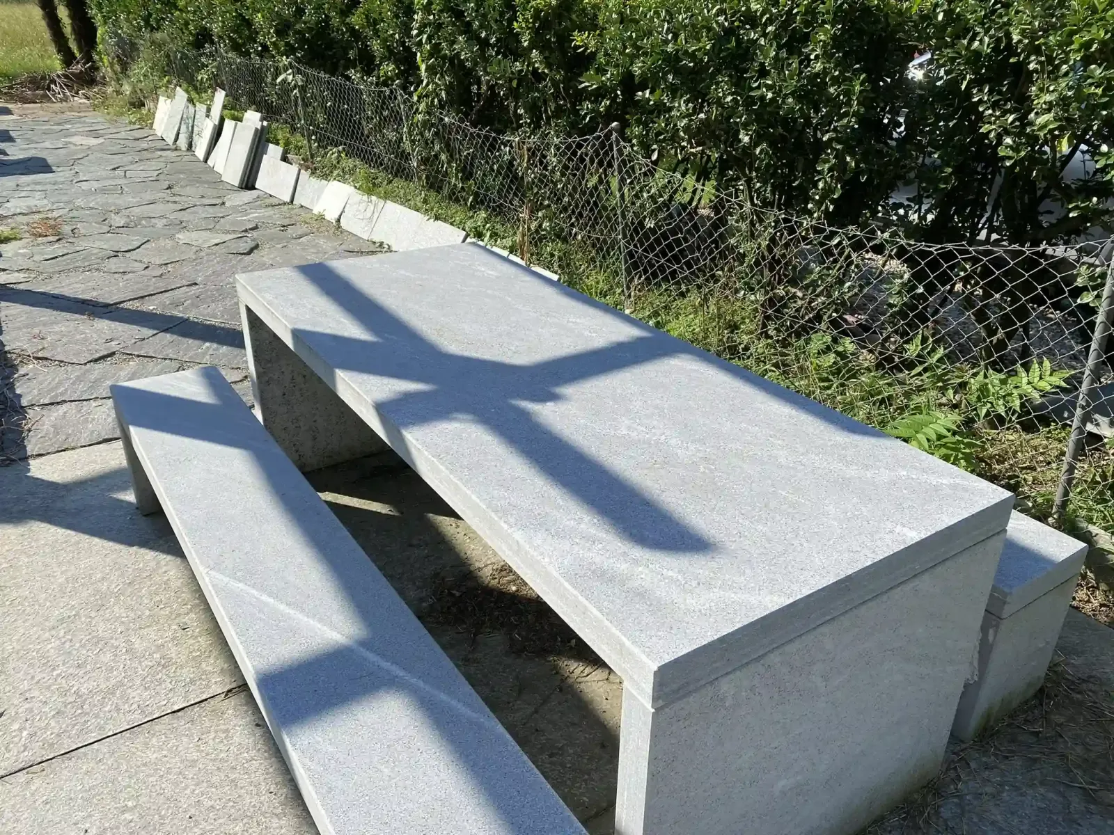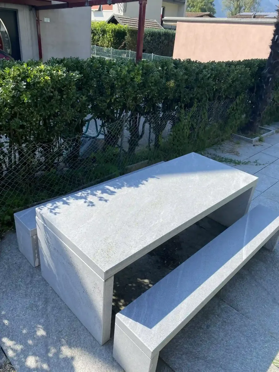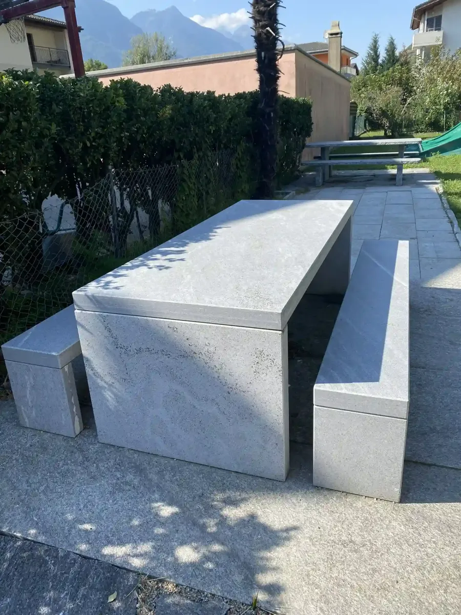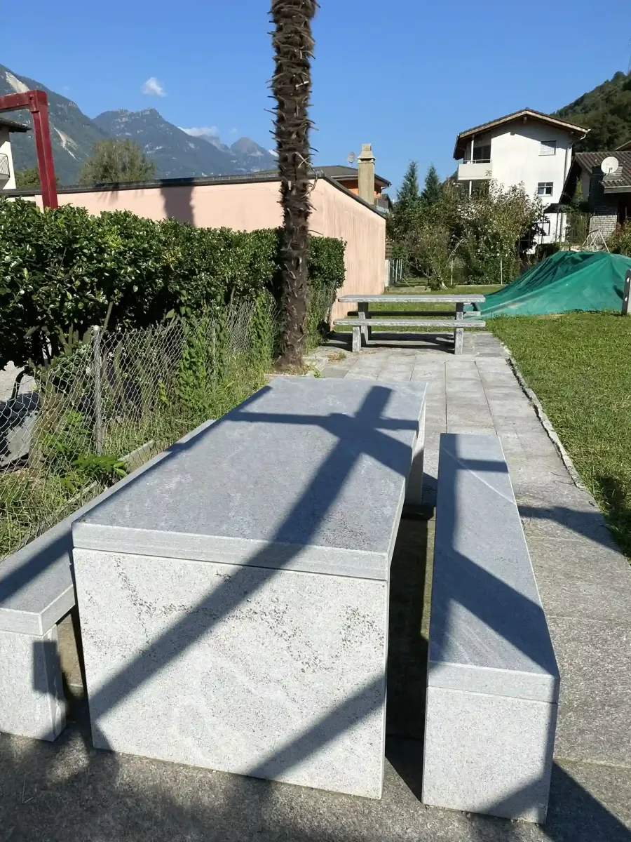 Gartentisch aus Tessinergneis hell Iragna,