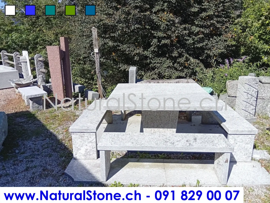 Der Gneis Tisch Quadro für enge verhätnisse im Garten und dennoch dem Wunsch für wenige Personen (4) einen gemütlichen Aufenthalt im Garten zu realisieren.